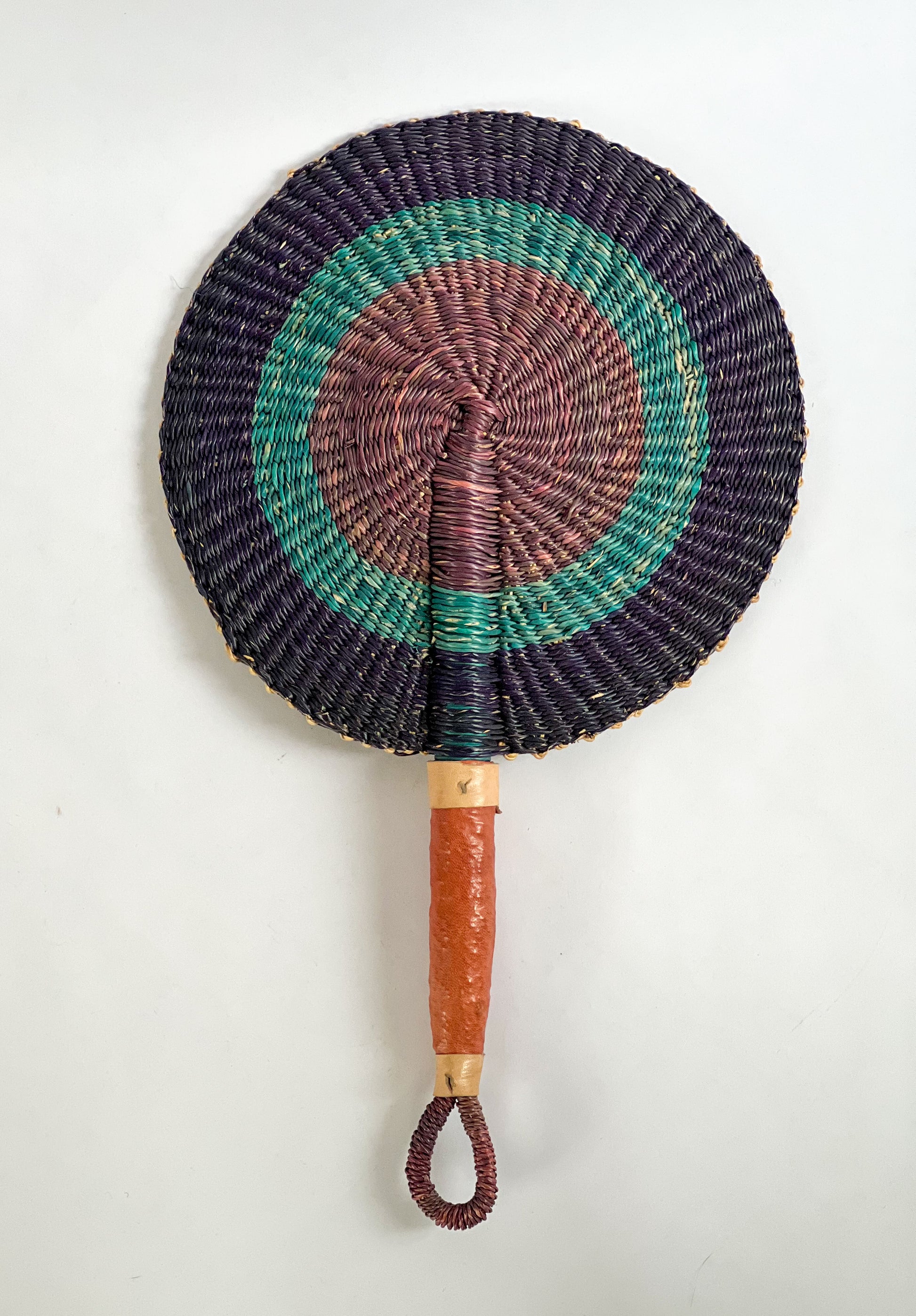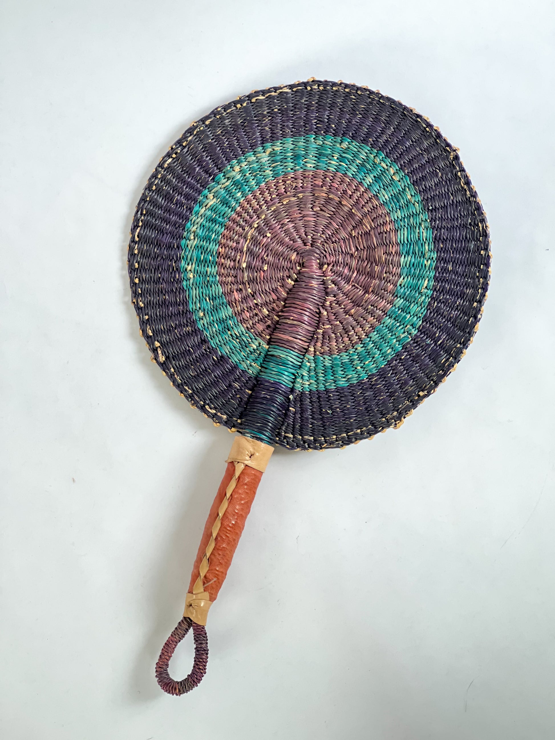 Handmade, woven fan for gallery wall. Can also be used to cool yourself on the beach, stoke a fire or charcoal, or as a fun accessory. Add texture and color to your collection of Moroccan handmade products.