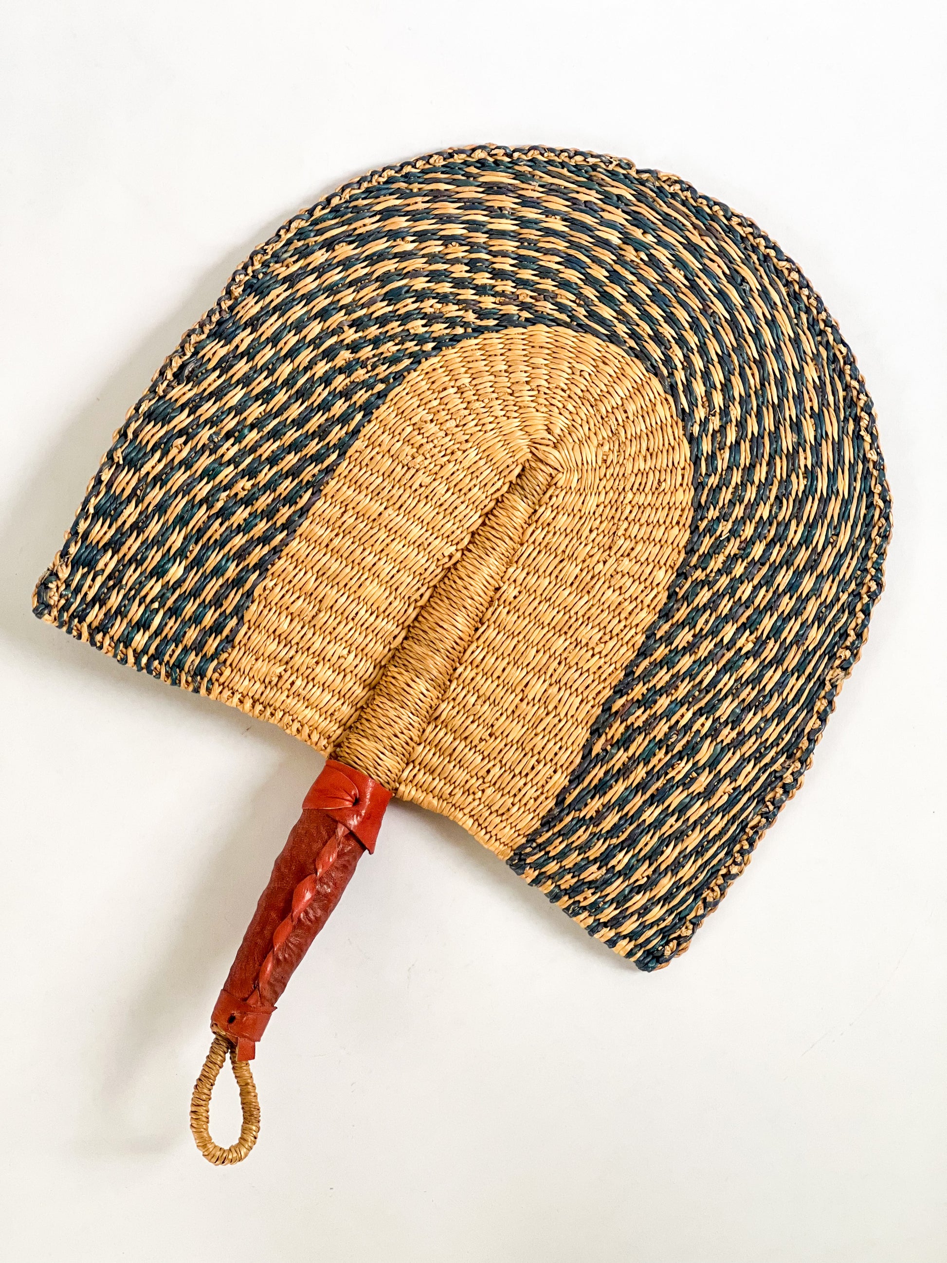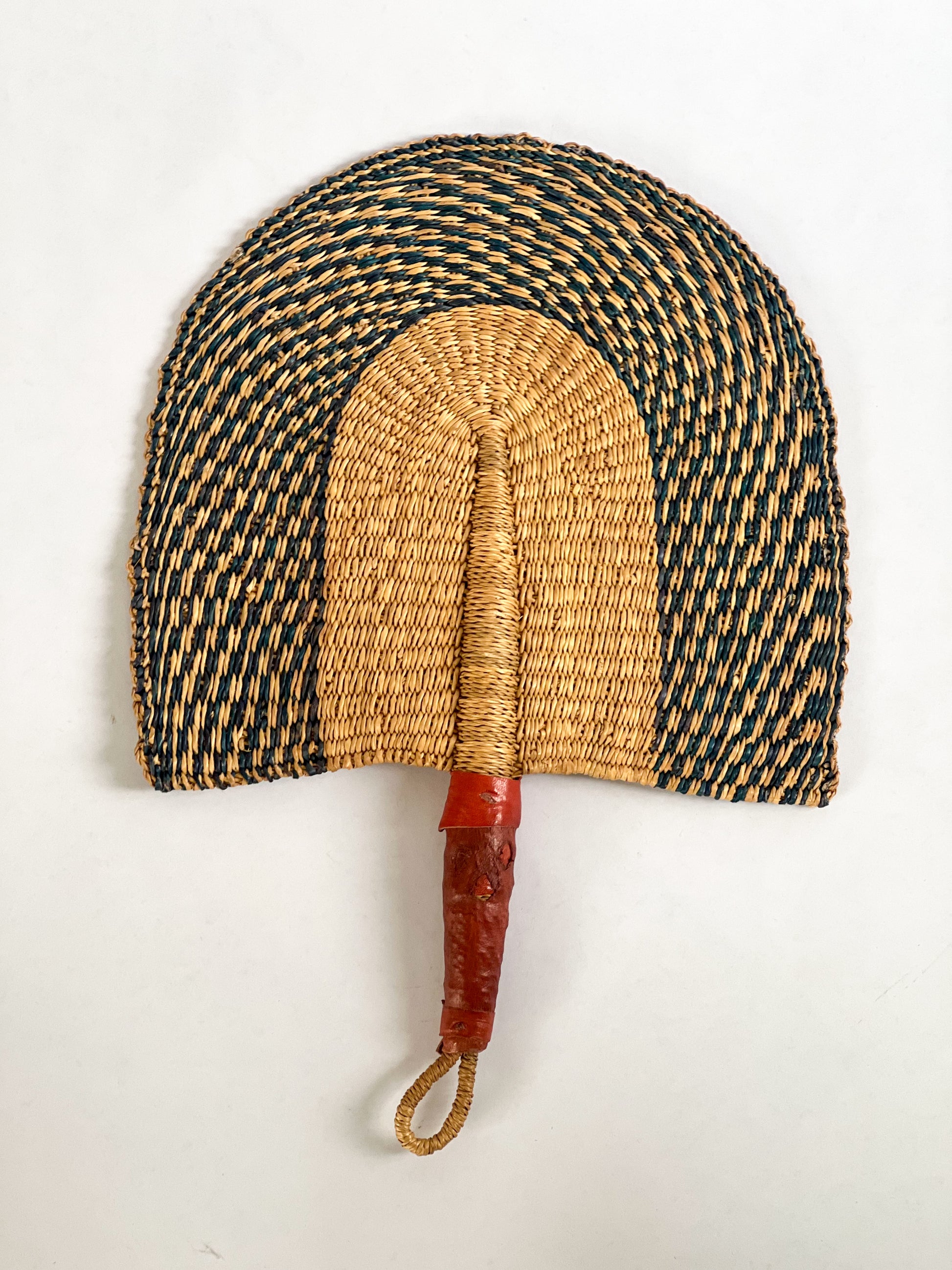 Handmade, woven fan for gallery wall. Can also be used to cool yourself on the beach, stoke a fire or charcoal, or as a fun accessory. Add texture and color to your collection of Moroccan handmade products.