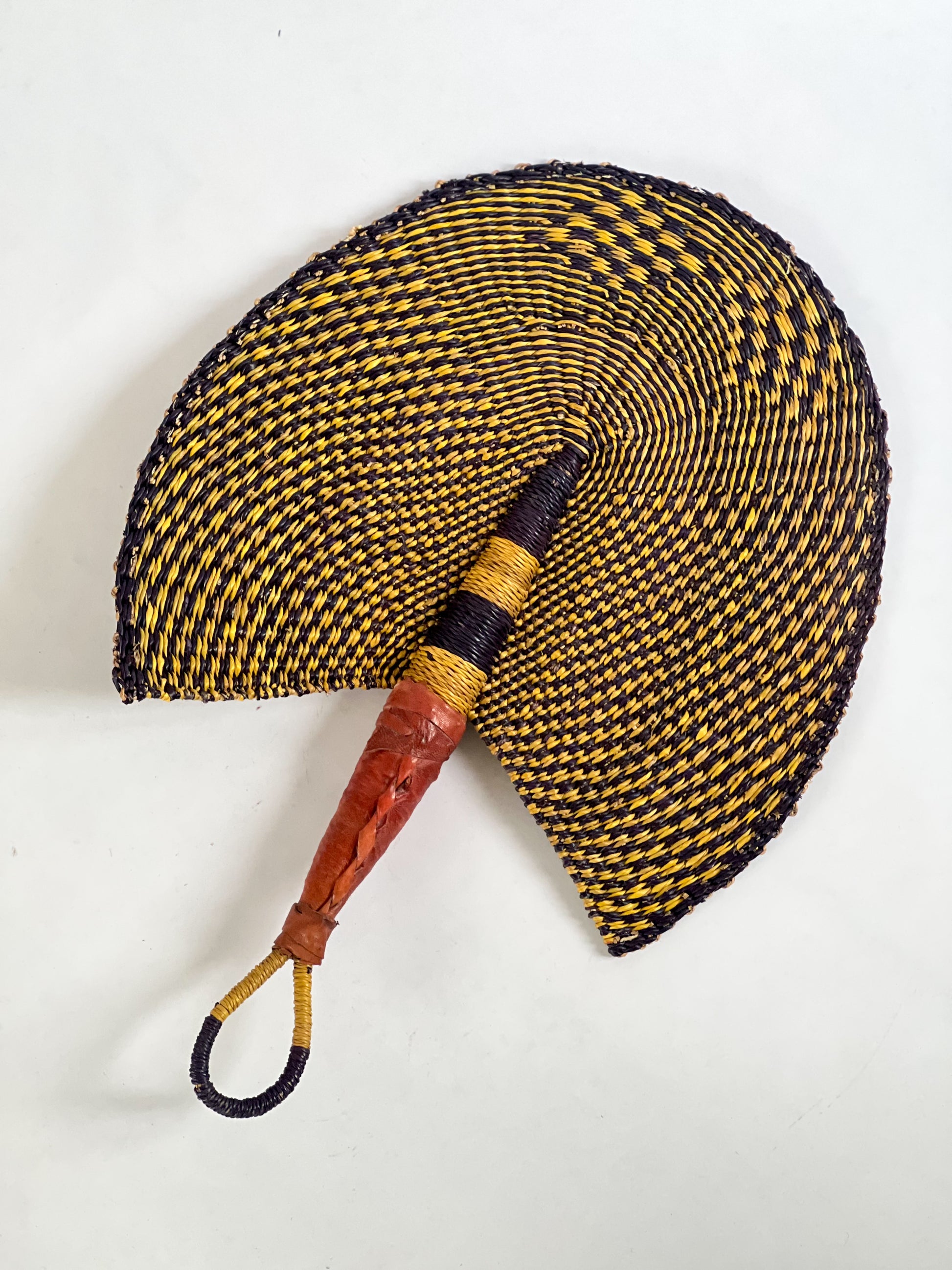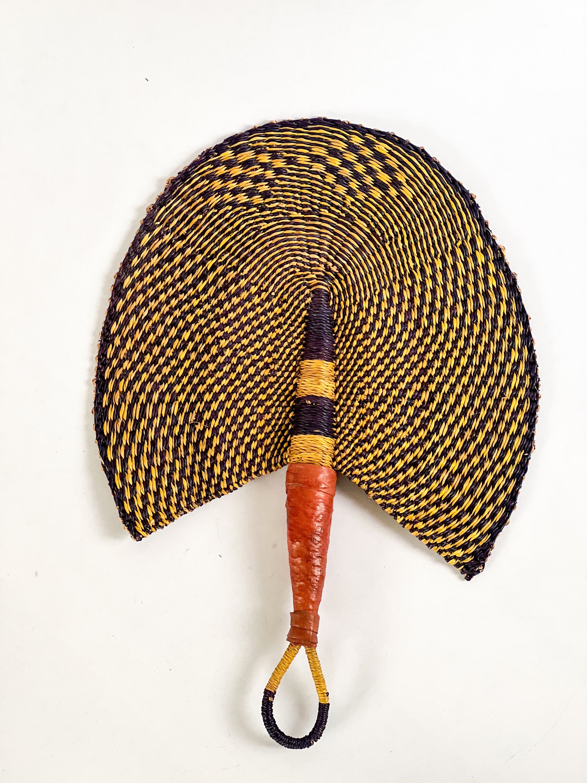 Handmade, woven fan for gallery wall. Can also be used to cool yourself on the beach, stoke a fire or charcoal, or as a fun accessory. Add texture and color to your collection of Moroccan handmade products.